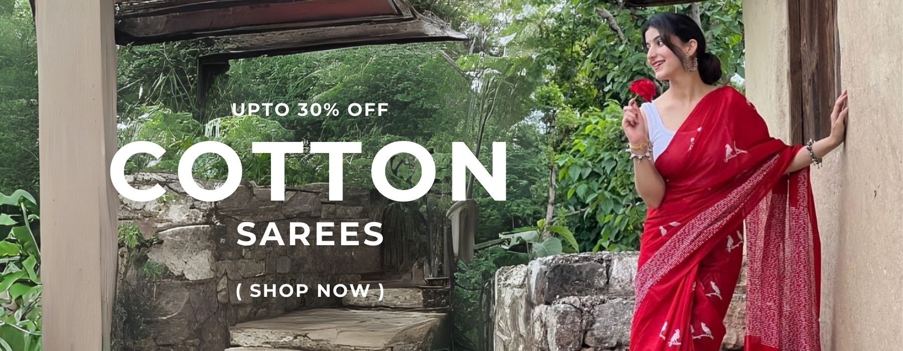Jaipuri Mulmul Cotton Block Printed Saree With Blouse