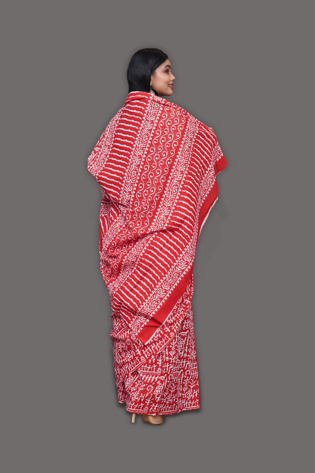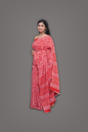 Jaipuri Mulmul Cotton Block Printed Saree With Blouse
