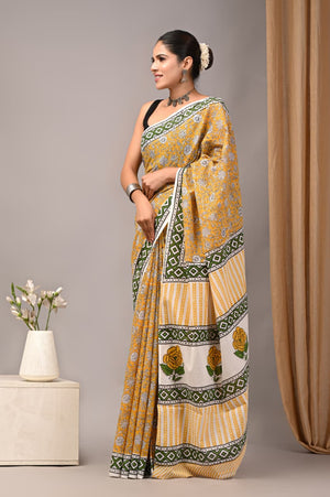 Jaipuri Mulmul Cotton Block Printed Saree With Blouse