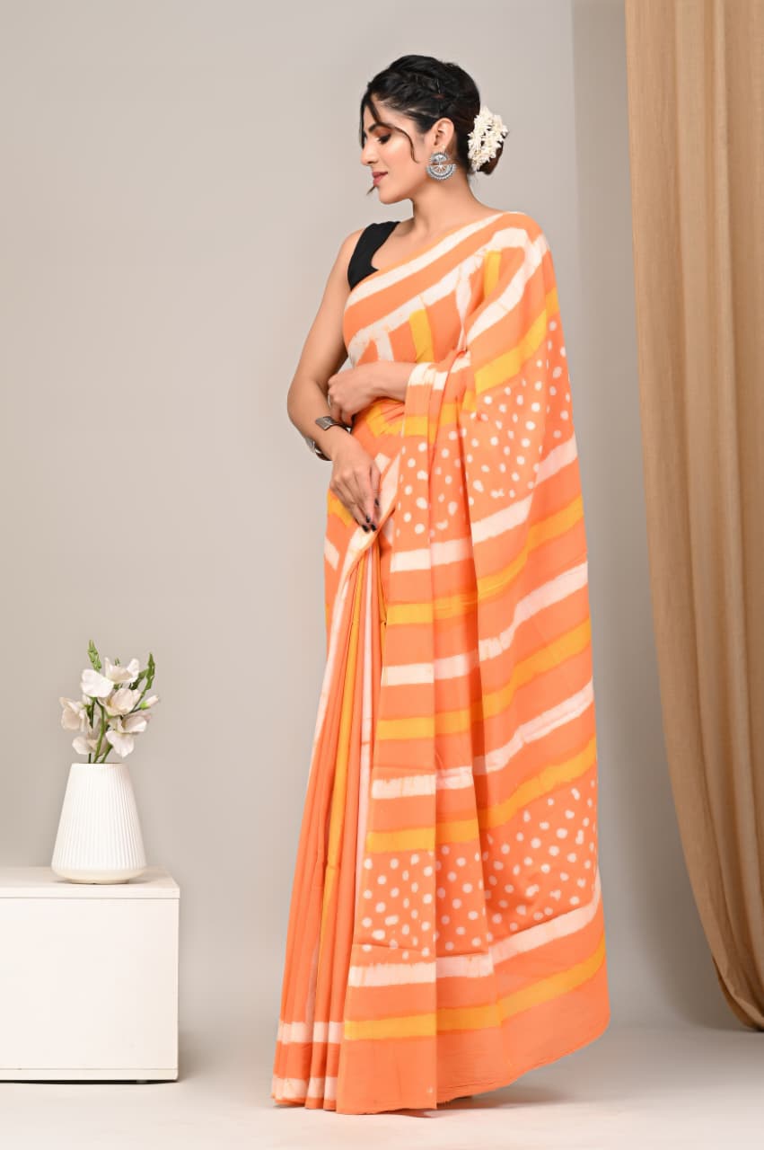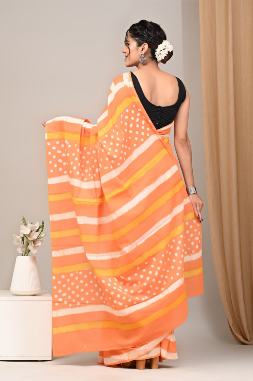 Jaipuri Mulmul Cotton Block Printed Saree With Blouse