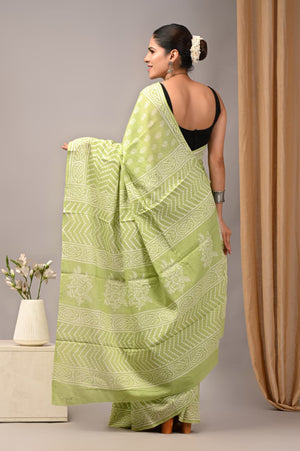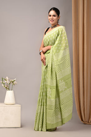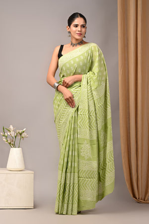 Jaipuri Mulmul Cotton Block Printed Saree With Blouse