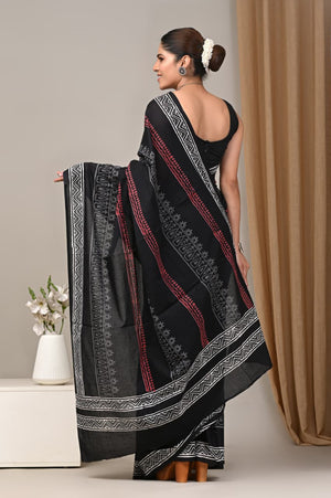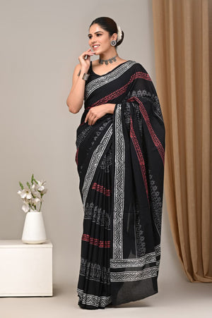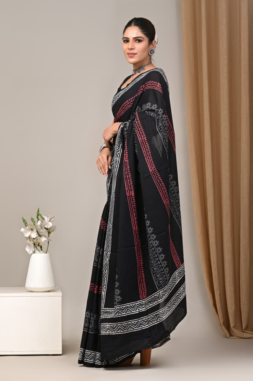 Jaipuri Mulmul Cotton Block Printed Saree With Blouse