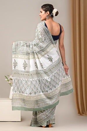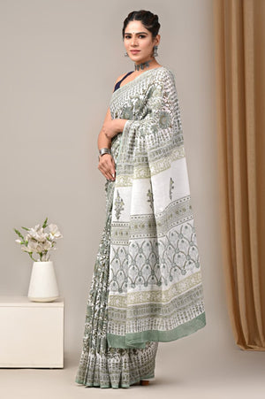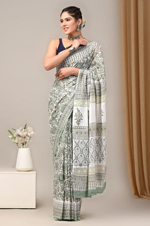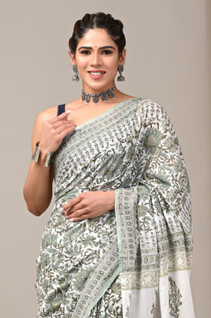 Jaipuri Mulmul Cotton Block Printed Saree With Blouse