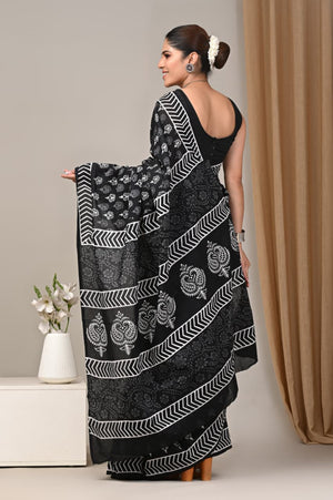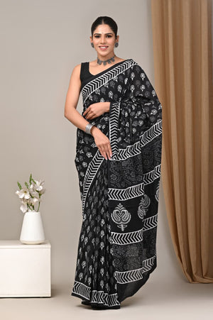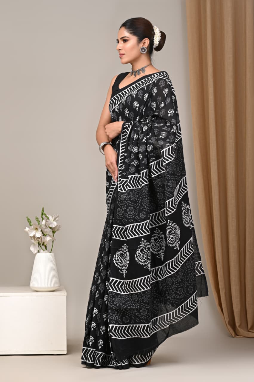 Jaipuri Mulmul Cotton Block Printed Saree With Blouse