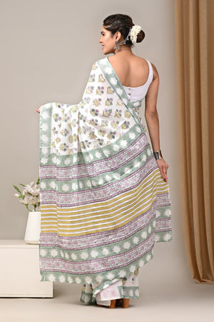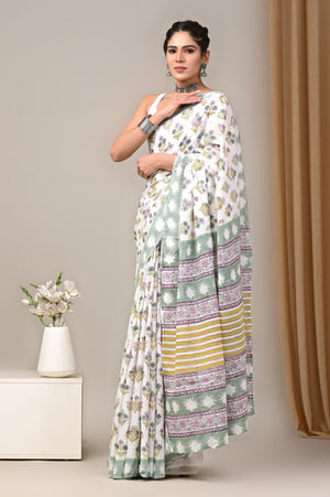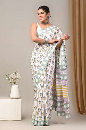 Jaipuri Mulmul Cotton Block Printed Saree With Blouse