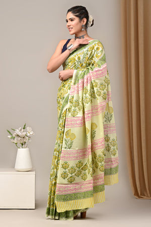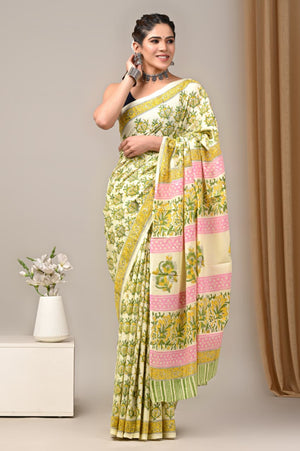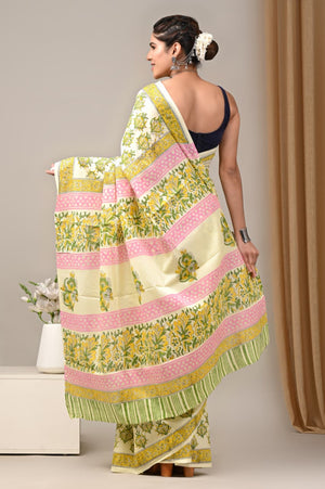 Jaipuri Mulmul Cotton Block Printed Saree With Blouse