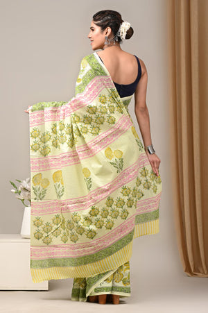 Jaipuri Mulmul Cotton Block Printed Saree With Blouse