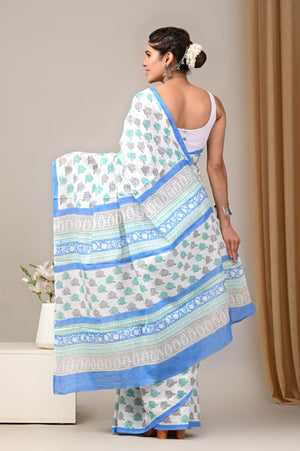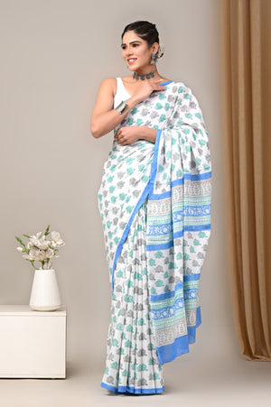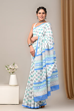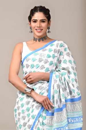 Jaipuri Mulmul Cotton Block Printed Saree With Blouse