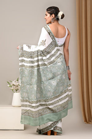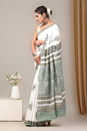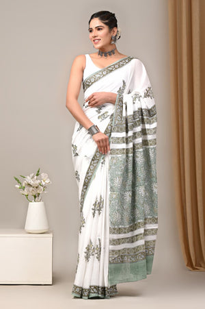 Jaipuri Mulmul Cotton Block Printed Saree With Blouse