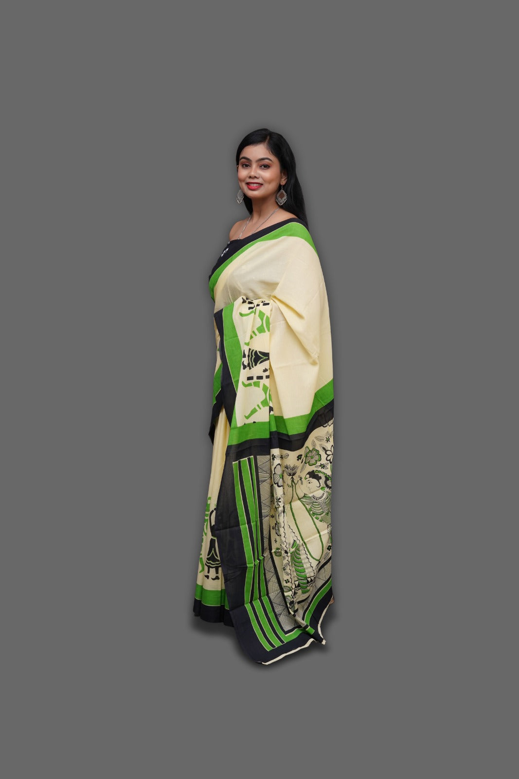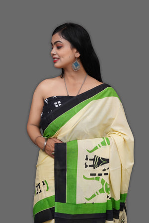 Experience the comfort and style of our attractive printed cotton saree. Made with high-quality cotton, this saree offers both comfort and style, making it the perfect addition to your wardrobe. With its unique and eye-catching print, you'll surely turn heads wherever you go. Elevate your traditional look and feel confident with our saree.