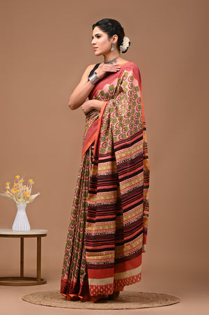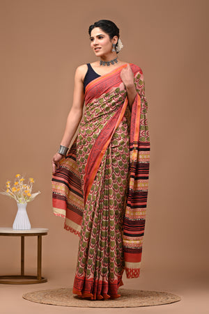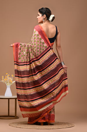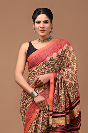 Jaipuri Mumal cotton saree With Blouse With Zari border